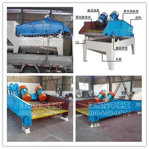 隆中礦用脫水篩是由篩箱、激振器、支承系統(tǒng)及電機(jī)組成。隆中礦用脫水篩設(shè)計(jì)成篩板主要部分在水平方向偏上5度角,礦用脫水篩辦后部與主板成45度角,兩個平衡的振動電機(jī)水平安裝,一個在另一個的上端,旋轉(zhuǎn)時補(bǔ)平衡力產(chǎn)生的回轉(zhuǎn)效果讓篩子的工作更穩(wěn)定;隆中礦用脫水篩采用了雙振動電機(jī)激振,結(jié)構(gòu)緊湊,擺脫了傳統(tǒng)偏心振動器結(jié)構(gòu)大、漏油、磨損大、噪聲大、不便維修的缺點(diǎn);礦用脫水篩的側(cè)體護(hù)板粘有耐磨橡膠,保證了礦用脫水篩不受磨損,減少了鐵質(zhì)對物料的污染;礦用脫水篩的篩板采用的是聚氨酯篩板,它的使用壽命要比一般材質(zhì)的篩板壽命長3-10倍.并且具有耐磨、耐腐蝕、耐沖擊等優(yōu)點(diǎn);礦用脫水篩的減振裝置采用的是橡膠減振柱,更適合潮濕的工作,既減振有經(jīng)久耐用。