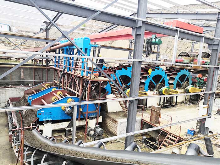 一般直接安裝于洗沙脫水篩后部,還會(huì)配置一臺(tái)渣漿泵,篩面淋下去的細(xì)沙泥漿水,經(jīng)過高壓渣漿泵泵入旋流器內(nèi),在0.3兆帕的壓力下,料漿經(jīng)過離心分離,實(shí)現(xiàn)細(xì)沙和泥水分離,細(xì)沙經(jīng)旋流器噴砂口落到篩面上,細(xì)沙被成功回收,旋流器溢流口排出的泥漿水再經(jīng)壓濾機(jī)處理后達(dá)標(biāo)排放或被再次循環(huán)利用。可以說,細(xì)沙回收機(jī)比洗沙脫水篩多了項(xiàng)能回收0.16mm以下的細(xì)砂的功能,有 效解決了細(xì)砂回收問題。
