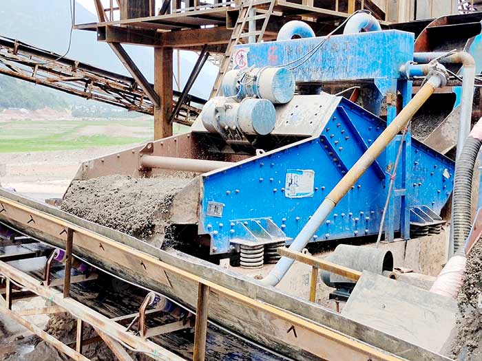 物料含水量過高或是物料是粒細、含水份、含較多泥質比較容易造成振動脫水篩篩網堵孔,因為物料的含水量如果太高,此時物料容易發生粘結現象,一粘結,物料就容易成團,成團的物料就無法透過振動脫水篩篩網的網孔,或是粘在網孔上,造成篩網堵孔,