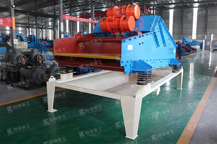2、含水量大、小顆粒物料應選擇振動電機型脫水篩,并采用4極振動電機因頻率高、速度快,可使物料快速直線運行避免粘結現象,因顆粒較小不存在堵網現象,粘結問題比較重要應采用4極振動電機。因含水量較大篩板應采用304不銹鋼沖孔板為主防腐蝕性較強。通常化工、醫藥行業選用較多。