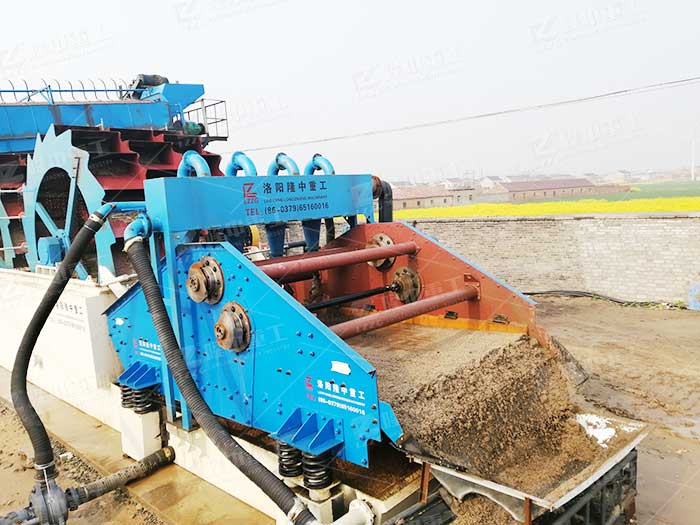 該設(shè)備結(jié)構(gòu)設(shè)置合理,采用滾筒篩洗機和輪式洗砂機配合振動篩設(shè)置,形成整體結(jié)構(gòu),多J篩分和清洗結(jié)合在一起,易于生產(chǎn)加工,生產(chǎn)周期短,占地面積小,處理能力大,同時采用雙渣漿泵和雙旋流器連通在一起形成兩組結(jié)構(gòu),水體的循環(huán)流動,節(jié)約水體消耗。