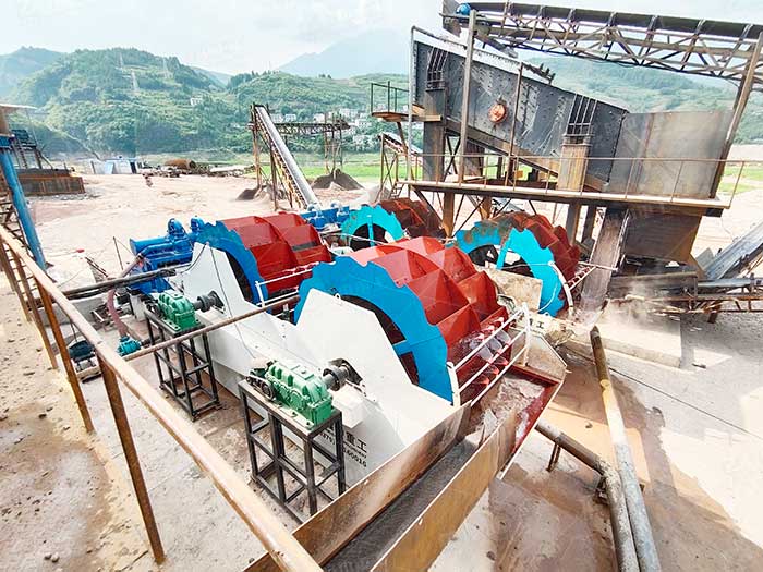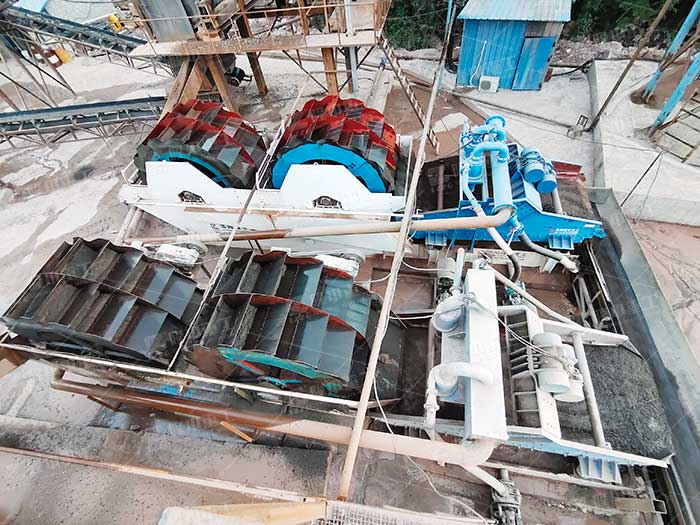 雙輪洗砂回收一體機,也叫雙輪洗砂一體機,是洛陽隆中重工于2018年,針對砂石洗選行業中,石粉、山砂等含泥含粉量較高的物料所研發設計的。該設備巧妙的將兩臺輪斗洗砂機與細沙回收機進行對接,有效解決了傳統螺旋洗砂機細沙流失量大、耗水量高、洗選不干凈的缺點,通過該設備的洗選,可以使成品沙J配更加合理,滿足客戶對成砂含泥量的品質要求。